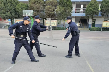 北大街派出所着力提升校园安防能力,组织民警深入北大街小学,针对校园安保力量开展最小作战单元专项训练,详细讲解防暴器械使用规范及协同作战要领,并通过实战演练检验训练成效、查漏补缺,全面提升校警队伍应对突发事件的快速反应和有效处置水平。